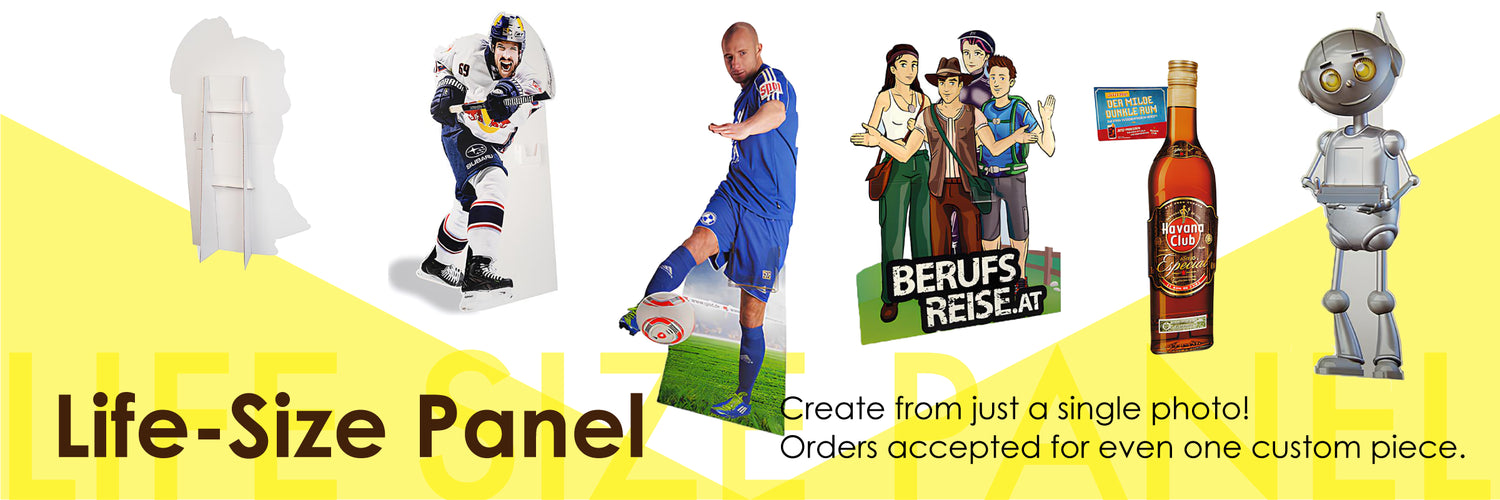 Life-size panels are popular as guide boards and promotional POPs at exhibitions, event venues, shopping malls, stores, movie theaters, game centers, and other amusement facilities.