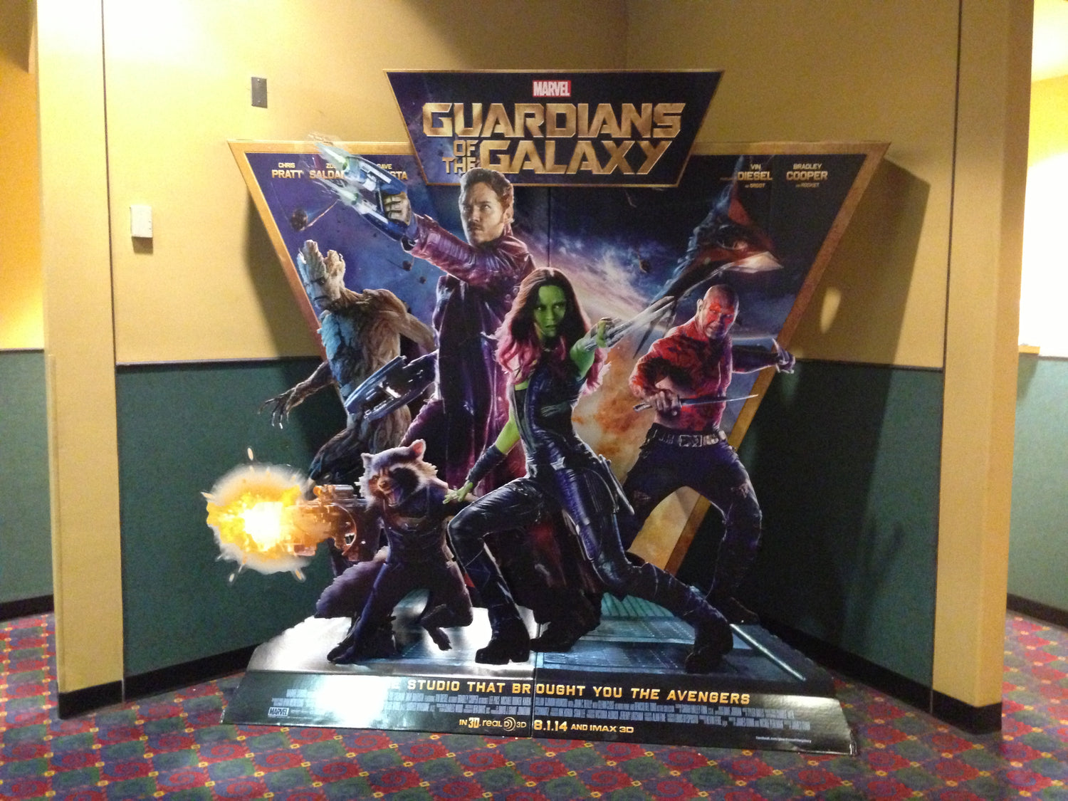 映画館のロビーや廊下には大きなパネルで作品の宣伝を。大型パネルディスプレイ以外にも、登場人物の等身大パネルやPOPデコレーションでグッズ売り場を華やかにディスプレイできます。
