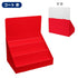 ひな壇に傾斜を付けることで展示品のパッケージが正面から見やすくなり手に取り易くなるほか、展示品の転落を防ぎます。