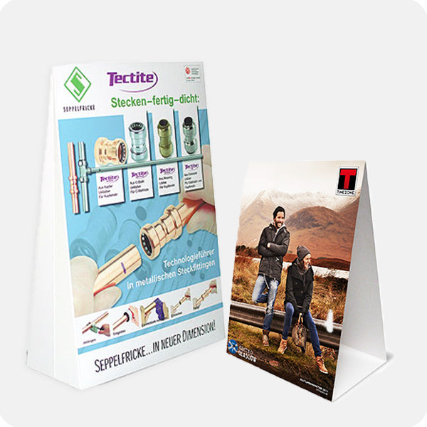 卓上に置いて、チラシやパンフレットを立てかける紙製什器です。