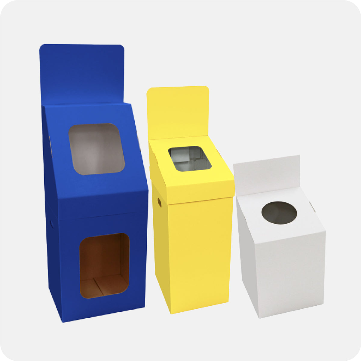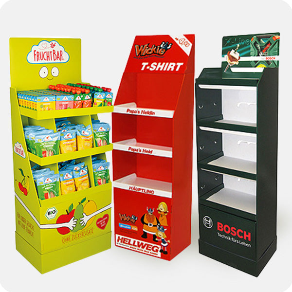 フロアタイプ什器は、商品を陳列するフロアに置くタイプの紙製大型什器です。
