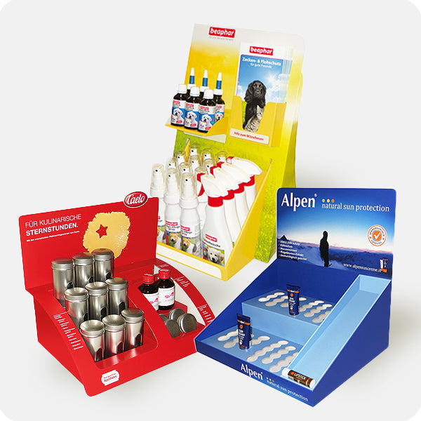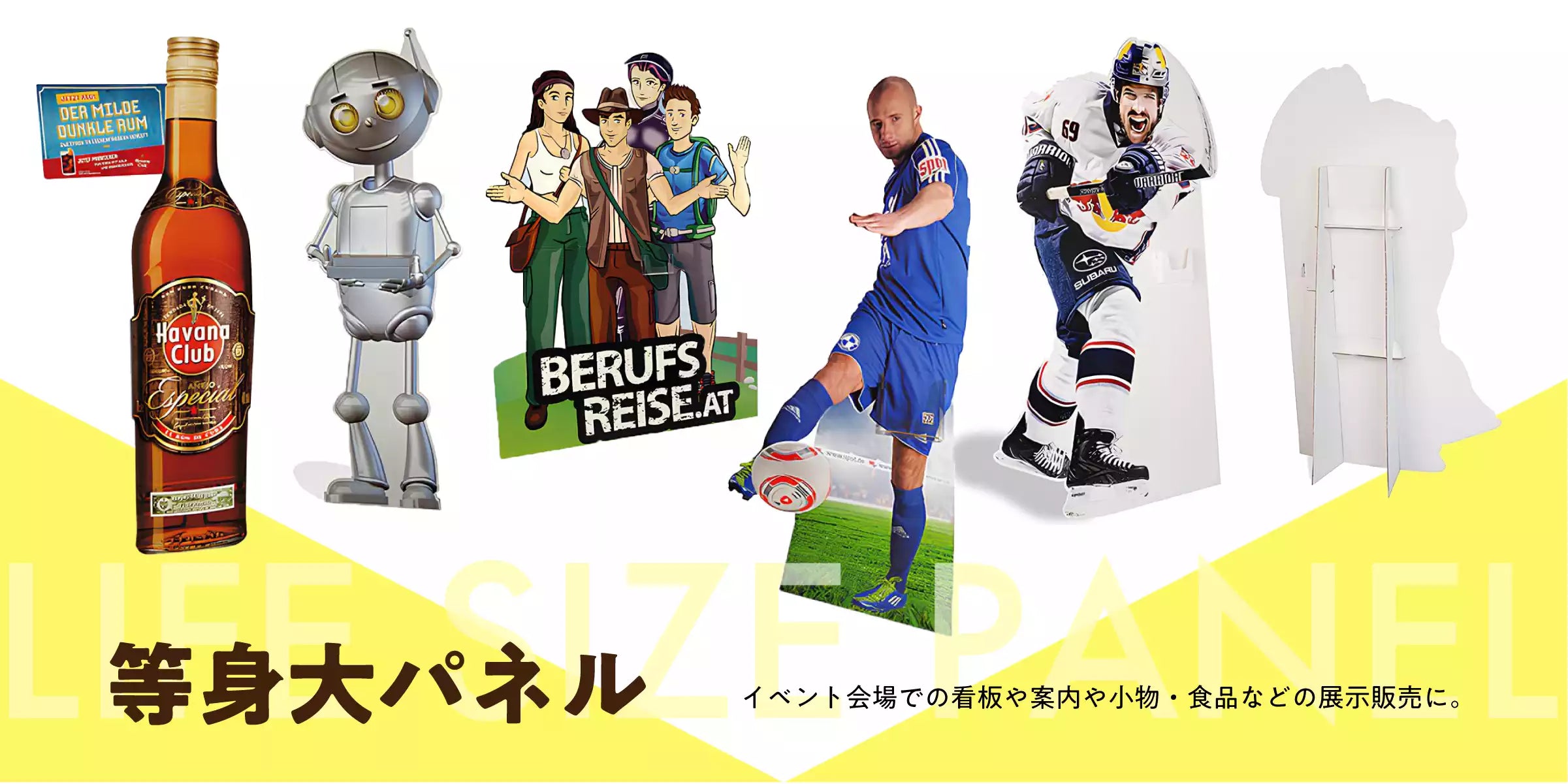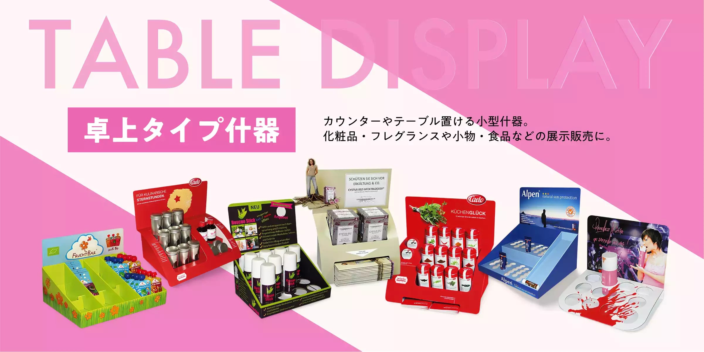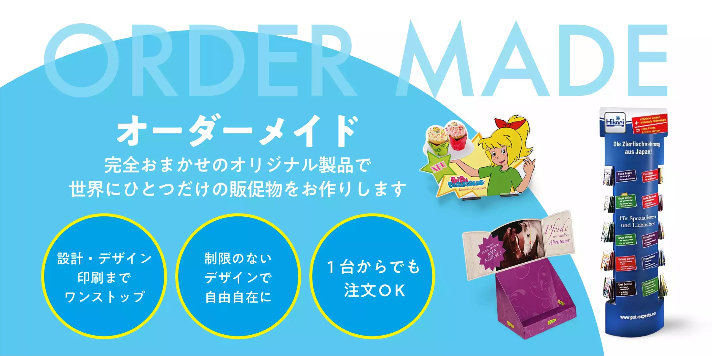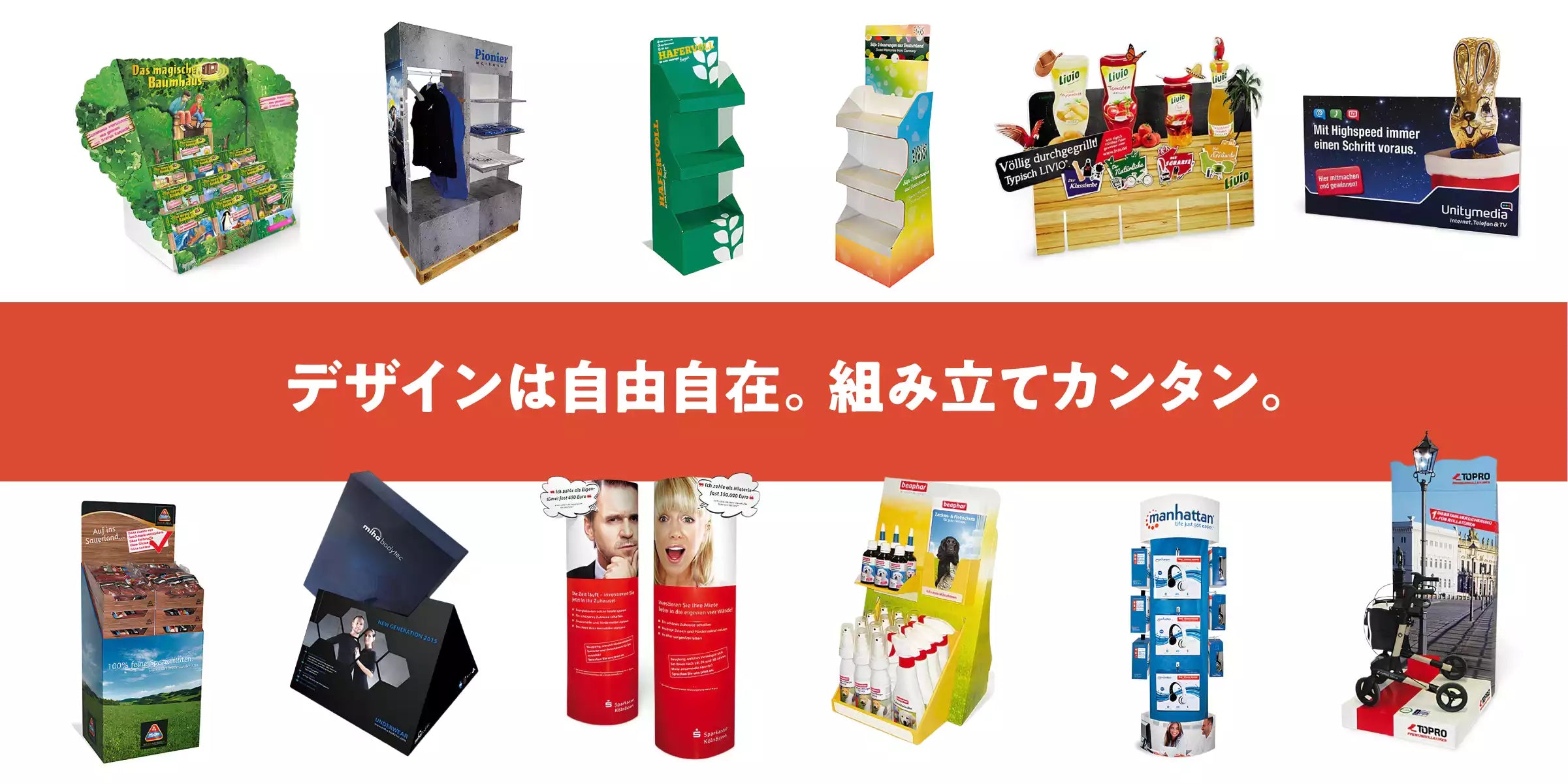 オリジナルデザインで強いインパクトを与えられる紙製ディスプレイ。